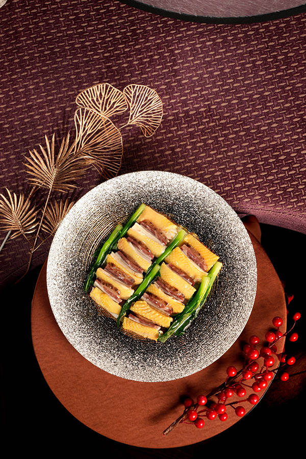 四人贺年套餐(澳门元2,688+*)精选十五年花雕白玉星斑球及鲍鱼烧鹅焖香苗等菜式,风味细腻雅致之余,亦展现精湛技艺,是家庭节庆小聚的不二之选。