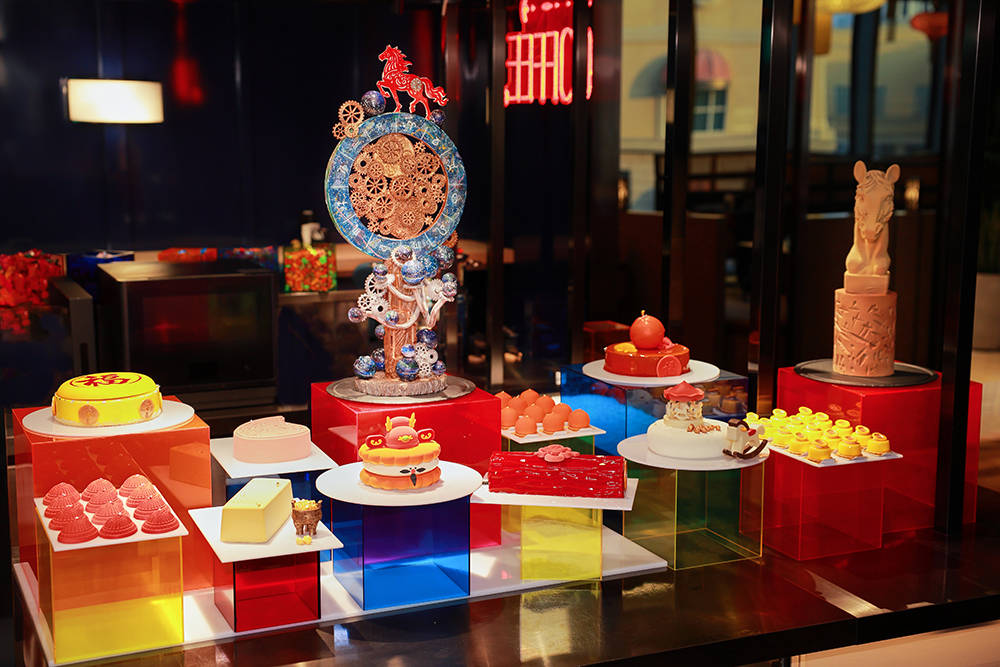 节庆菜单以寓意吉祥的新春捞起三文鱼为亮点,融合三文鱼、金黄薄脆和蔬菜丝,宾客可亲手“捞起”为新年掀起好运。此外,菜单还汇集多款经典贺年菜式,包括新加坡黑胡椒蟹、发财蚝豉大利及新春鸿运当头烤乳猪。为增添欧陆节庆风情,餐厅特别设有厨师现场切配的伊比利亚5J火腿,让宾客品味咸香臻味。最后,宾客可前往甜点专区尽情品尝一系列主题甜点,为这顿丰盛团圆聚餐画上完满句点。